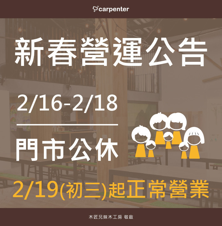 ✨木匠兄妹木工房春節初三開始正常營業唷!