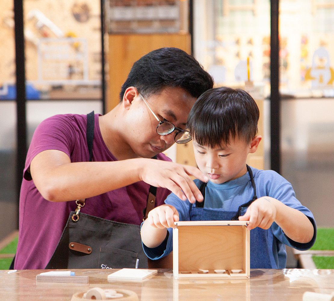 孩子用雙手與木頭對話,跟著引導一步步完成作品,在動手的過程中培養專注力、發揮創意。