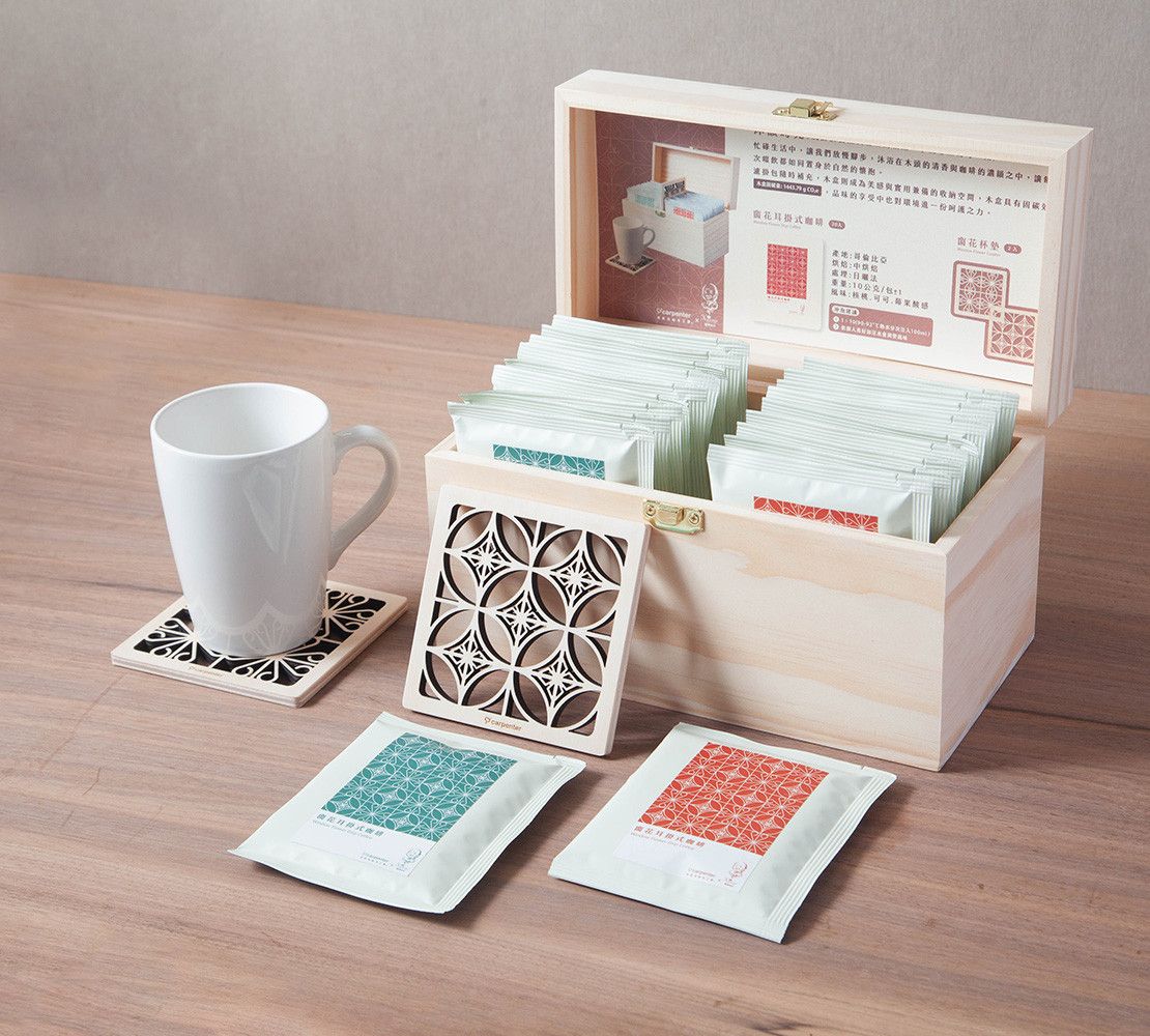 ■沐韻時光咖啡禮盒 | 木盒、窗花杯墊與咖啡,如沐春風好時光。