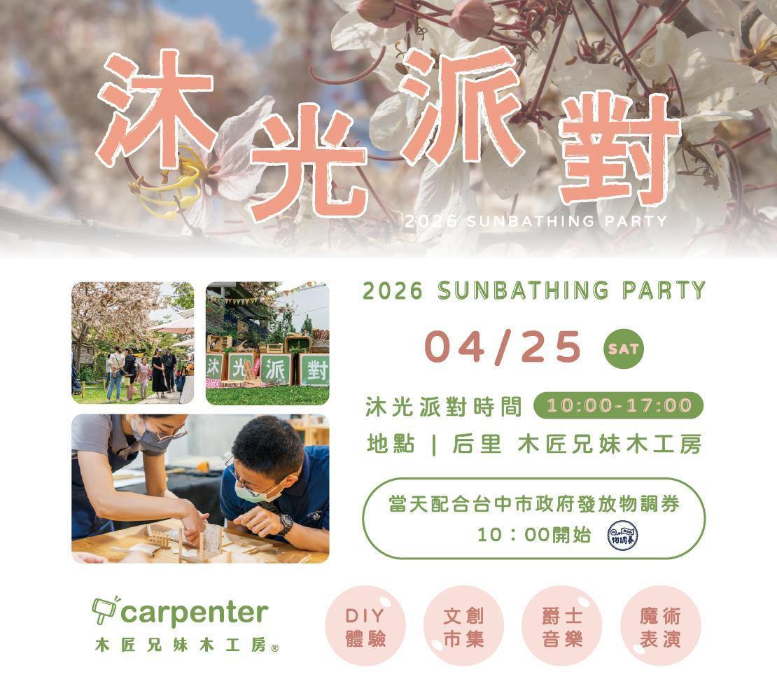 4/25來到台中后里沐光派對,花毯、市集、音樂與DIY一次整合。從上午到下午不同體驗串連,適合親子出遊或朋友相約。