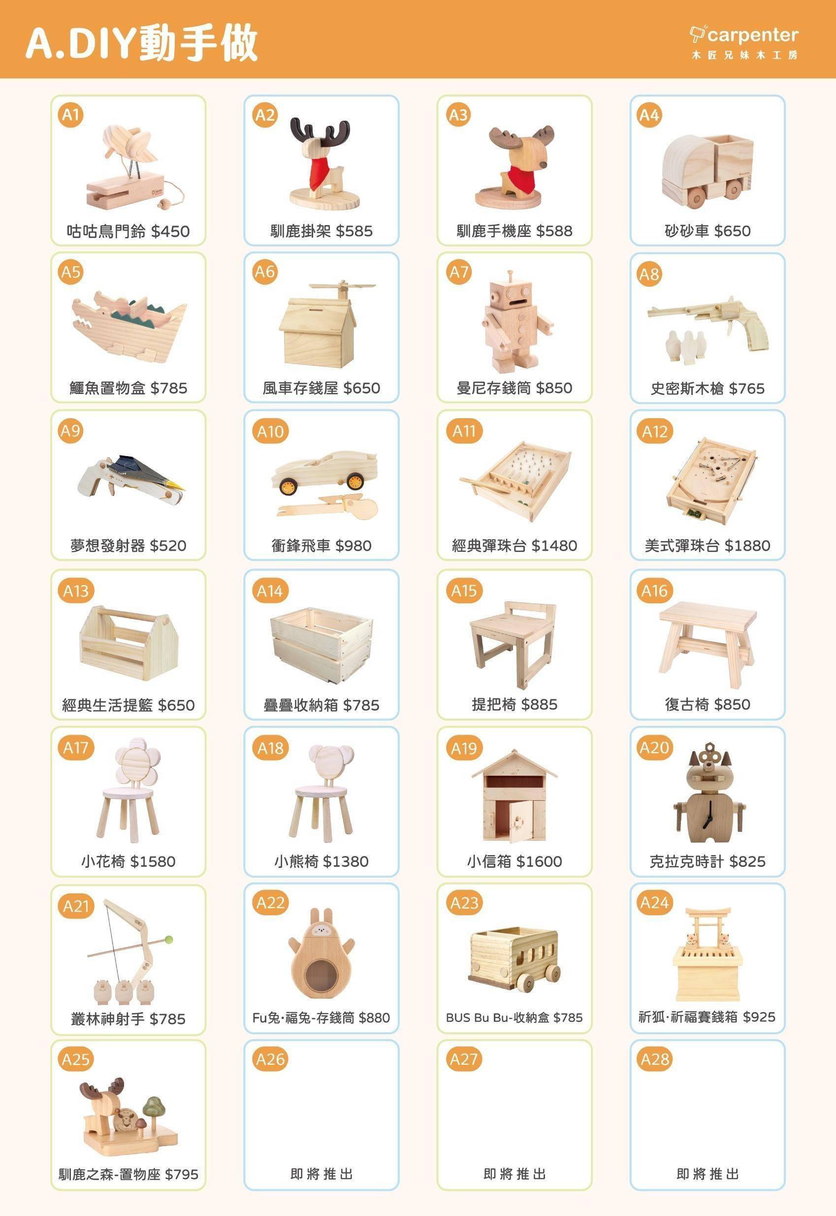 1. 木作課程3人成行,可複選作品。
